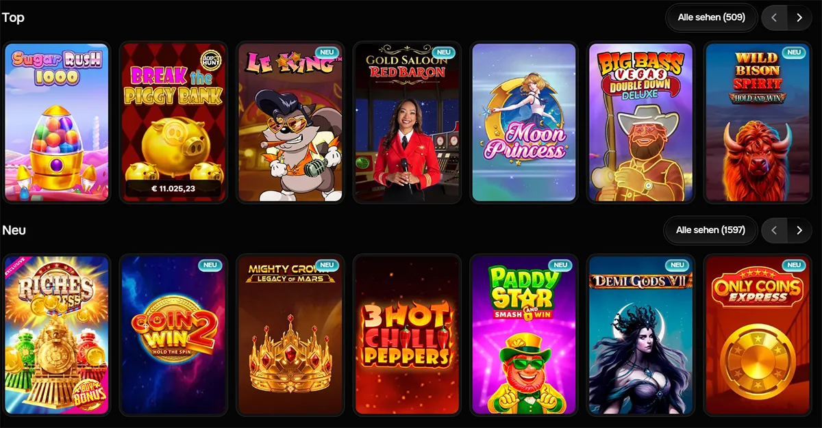 Thunderkick, Yggdrasil und Nolimit City ergänzen unser Portfolio mit innovativen Spielkonzepten. Red Tiger und ELK Studios liefern visuell beeindruckende Slots mit cinematischen Effekten.